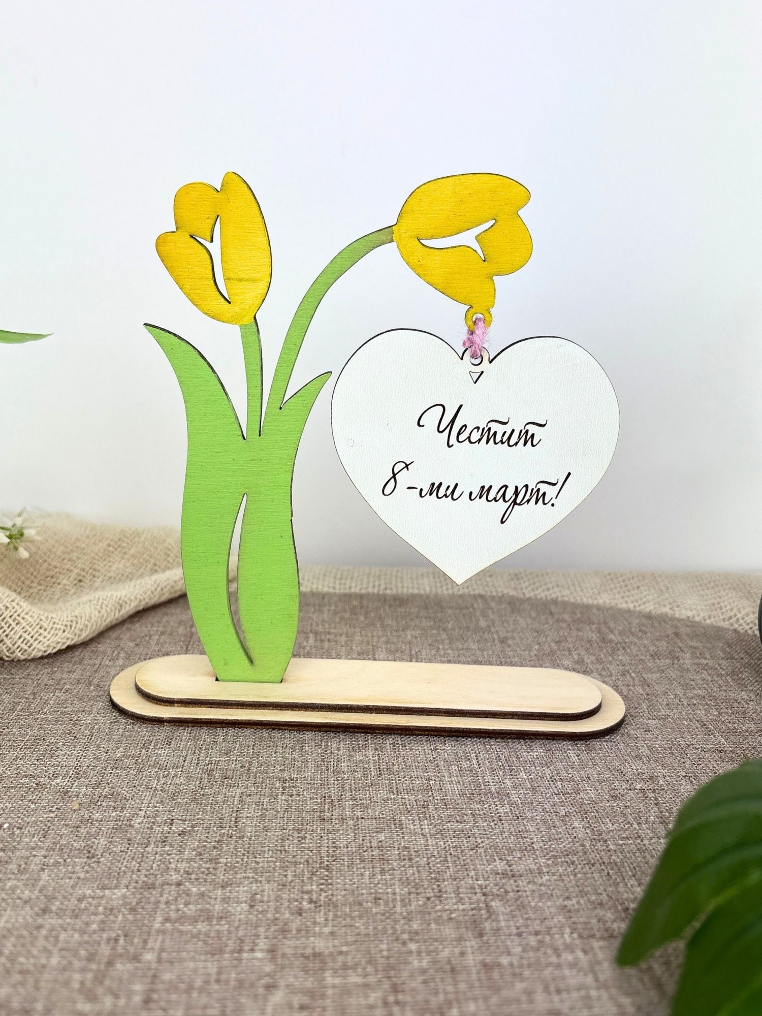 Дървено лале със сърце – подарък за 8 март
